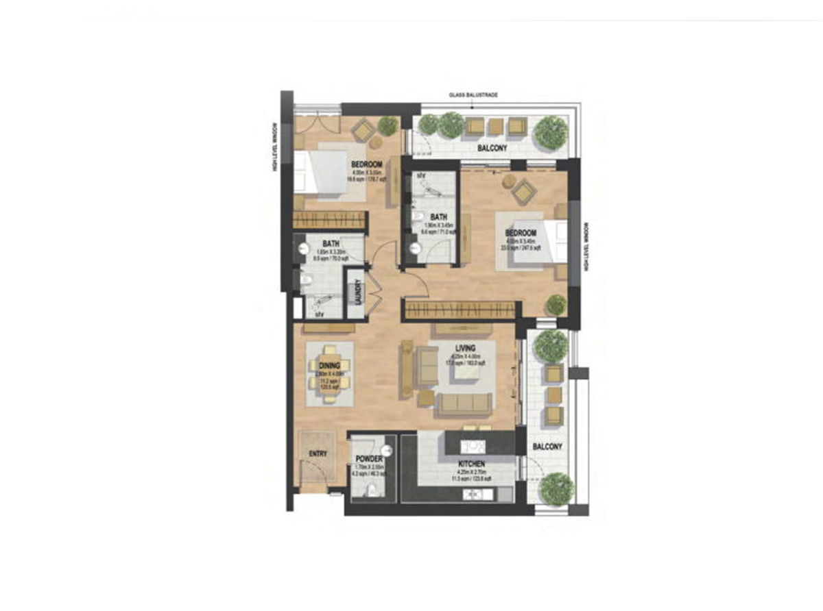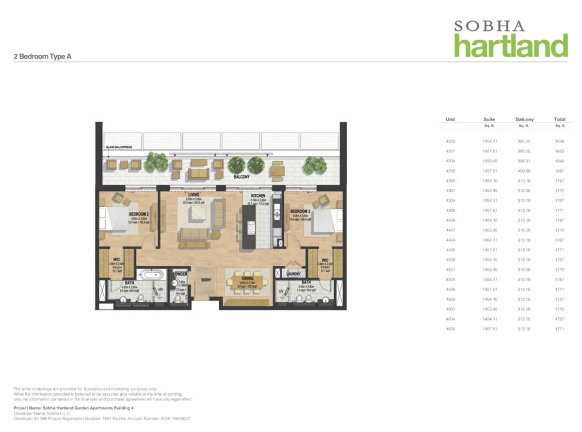 1 BR Apartment | On Request (Carpet Area) | AED 1.1 M Onwards | |